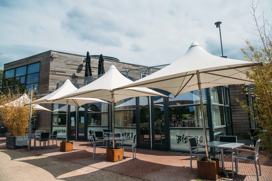 U kunt plaats nemen op onze picknicktafels of terrastafels voor een lekker koud drankje of genieten van uw lunch of diner onder de parasol.